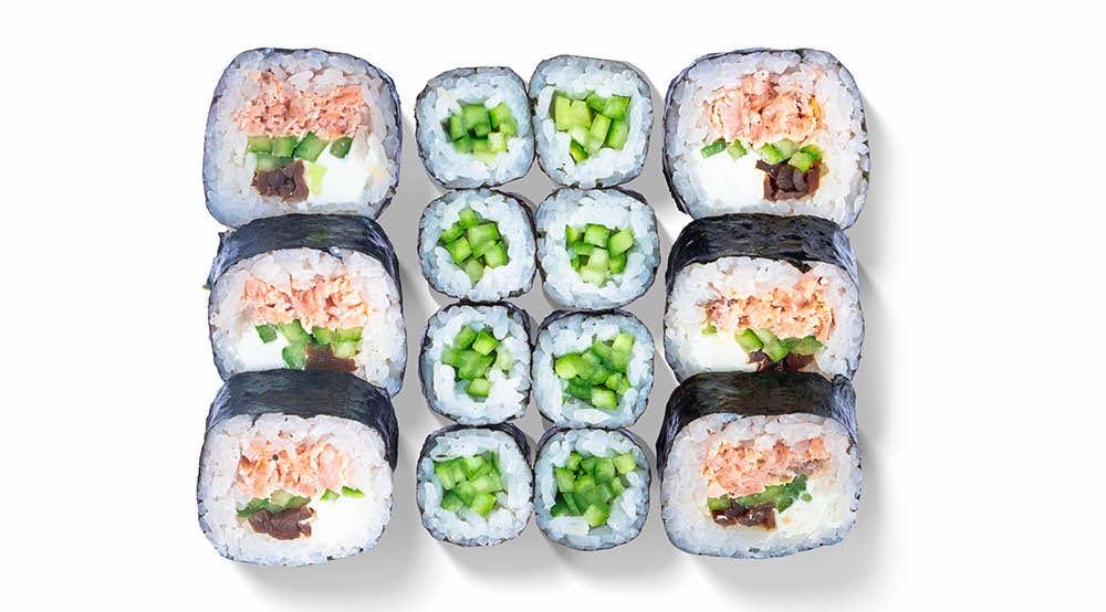 • 6 x Futomaki Łosoś Pieczony (Serek; Łosoś pieczony; Ogórek; Tykwa)